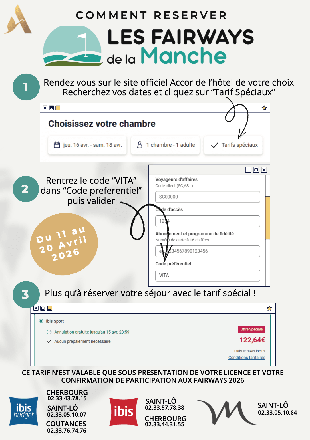 Labels Manche, Centrale de Réservation d’hébergements touristiques de la Manche, vous propose des hébergements (classés ou labélisés) pour vous permettre de participer aux Fairways de la Manche dans les meilleurs conditions possibles !